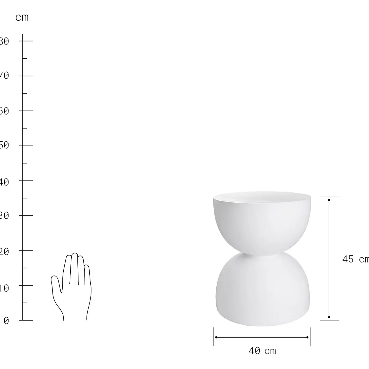 - Weitere Maße: Ø 40 cm, Höhe 45 cm