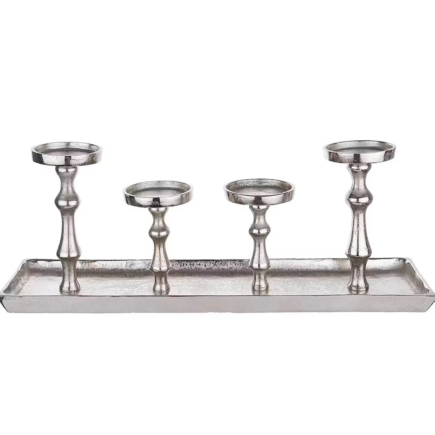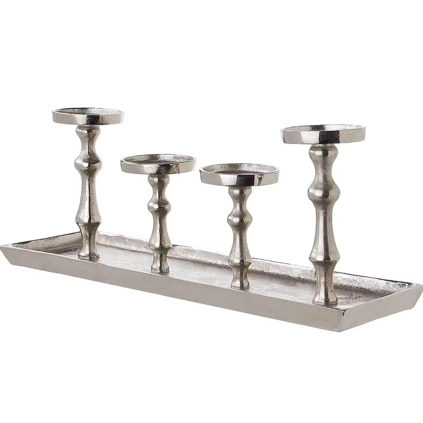 Jetzt wird´s opulent: Mit dem Banquet Tablett mit 4 Kerzenhaltern in schillerndem Silber wird Ihr gedeckter Tisch zur festlichen Tafel und Ihre edle Deko zum glamourösen Schmuck.