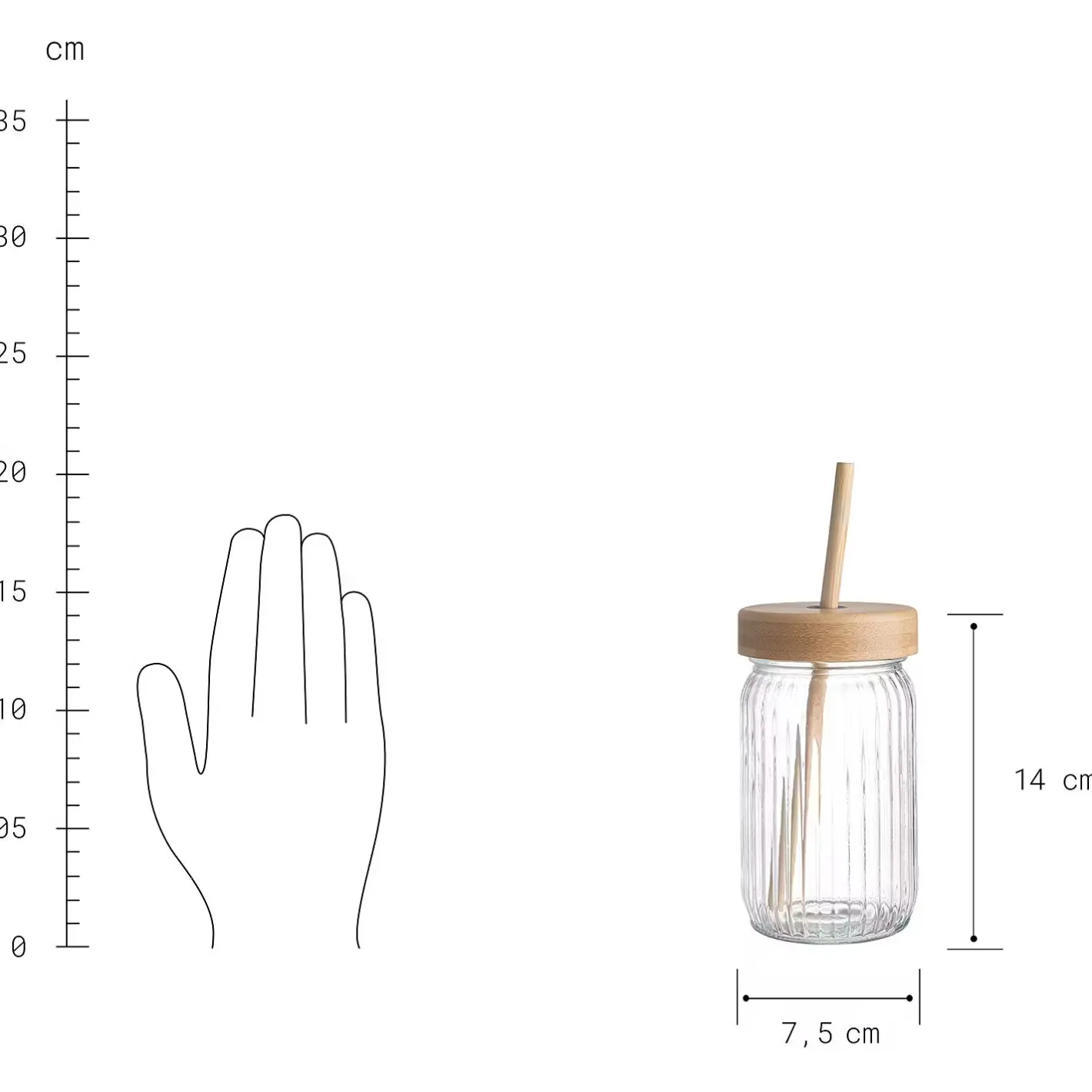 - Weitere Maße: Ø 7,5 cm, Höhe 14 cm, Füllmenge: 450 ml