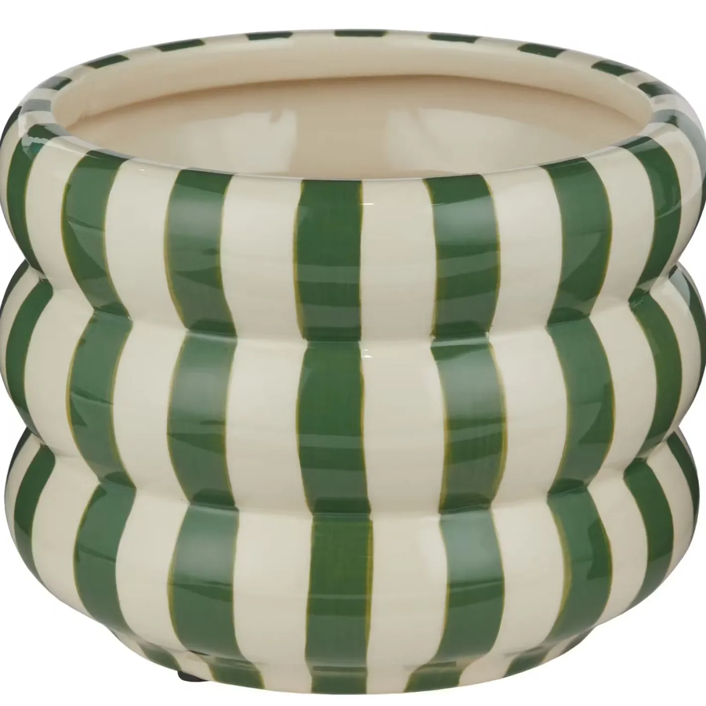 Weil jede Topfpflanze ein gewachsenes Unikat ist, hat sie auch einen individuellen Blumentopf wie den Hoop Blumentopf mit Streifen aus Steingut verdient. Seine moderne Form erinnert an Ringe oder Reifen, die dekorativ aufeinander liegen.