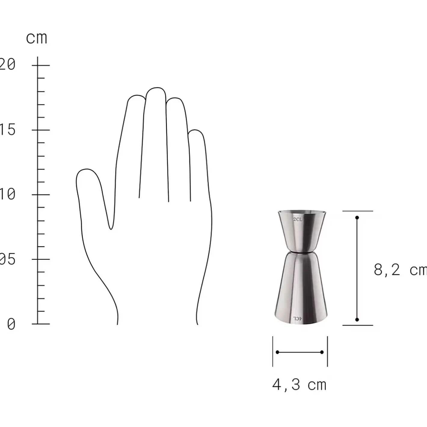 - Weitere Maße: Ø 4,3 cm, Höhe 8,2 cm, Füllmenge: 2cl/4cl