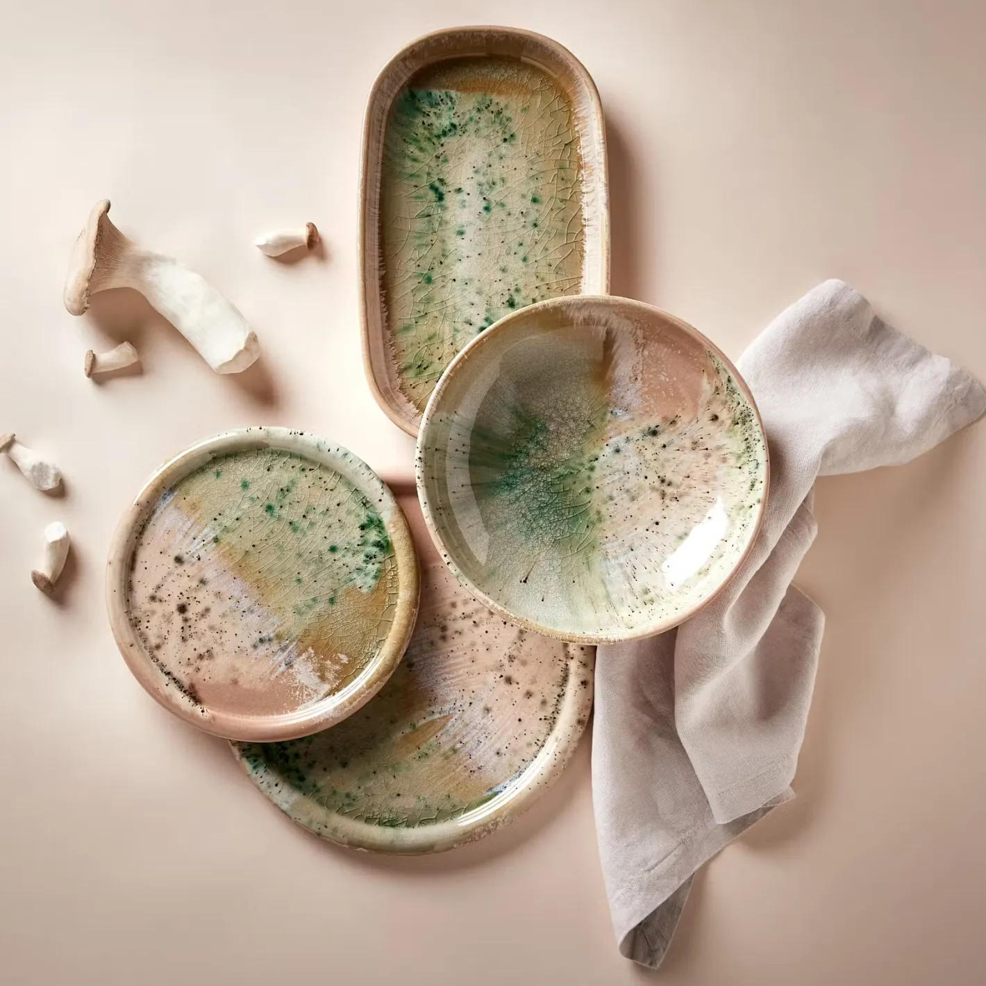 - Material: Steinzeug, reaktive Krakelé Glasur