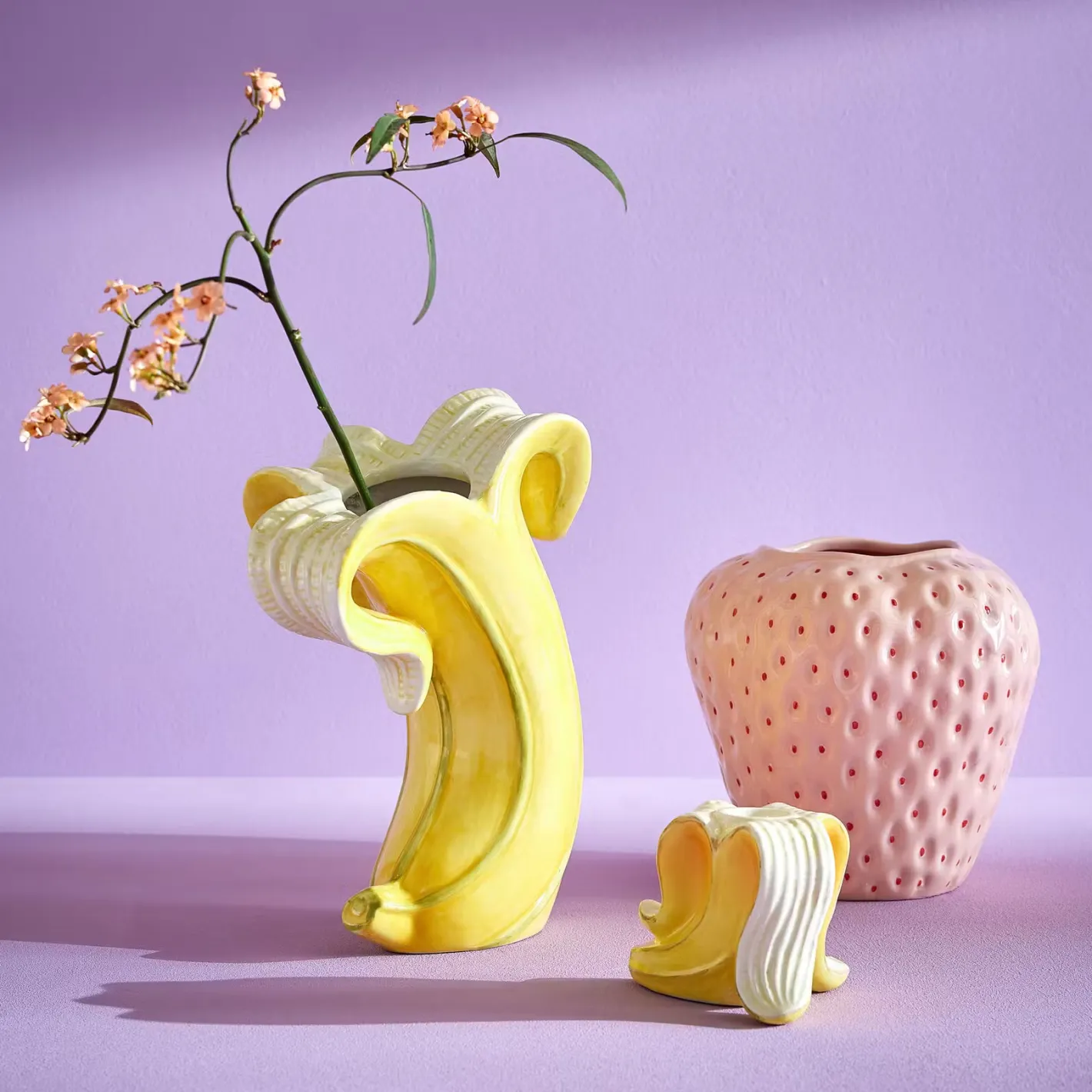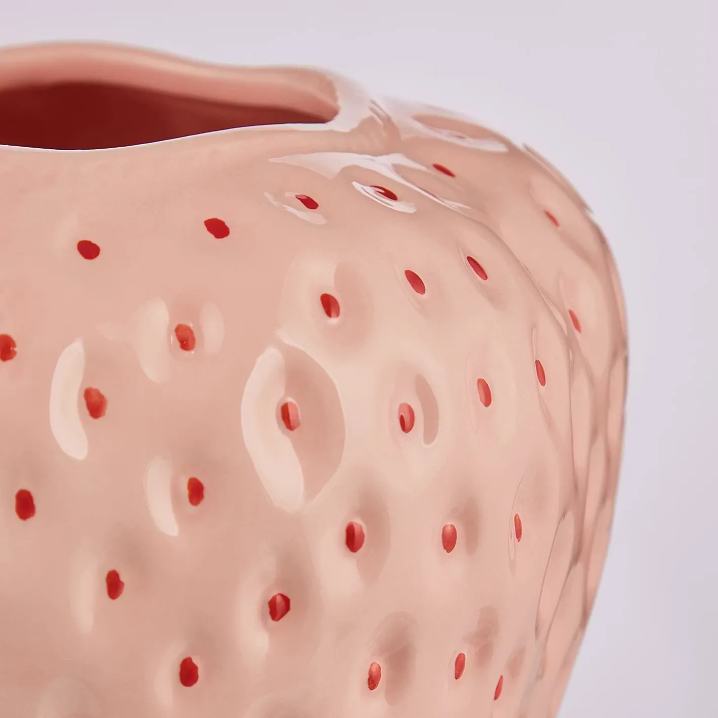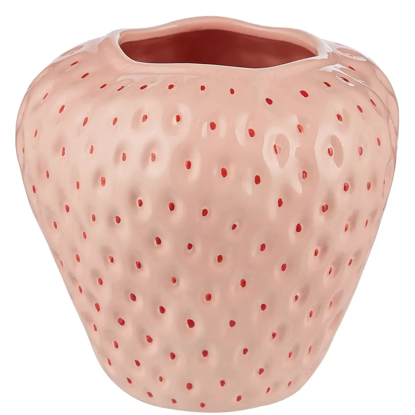 Du kannst von leuchtend roten Erdbeeren auch optisch gar nicht genug bekommen und gönnst dir deshalb mit der Strawberry Vase aus Steingut einen fruchtigen Deko-Leckerbissen. Diese originelle Vase in Erdbeerform wirkt wie ein Vitamin-Kick für deine Einrichtung oder deinen gedeckten Tisch, vor allem in Verbindung mit frischen Blumen oder Zweigen. In zwei Größen erhältlich, zudem gibt es einen Strawberry Deko Teller und eine Strawberry Deko Platte.
