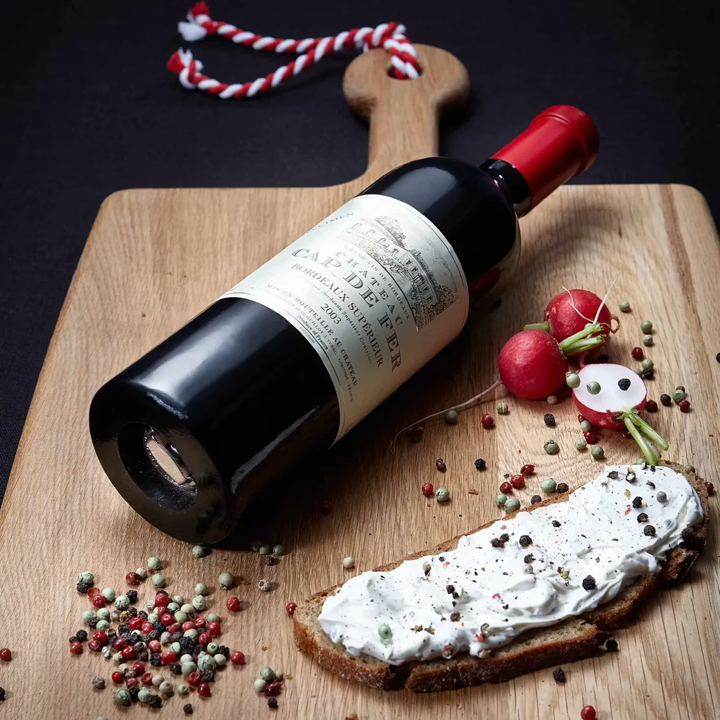 - Weitere Qualitätsmerkmale: Es gibt Rotweine mit einer leichten Pfeffernote. Wer zu dieser Flasche greift, erhält jedoch Pfeffer pur. Denn was einer echten Weinflasche mit aufgeklebtem Etikett und roter Kapsel zum Verwechseln ähnlich sieht, ist eine hochwertige Pfeffermühle aus Holz mit Metall-Mahlwerk. Eine Überraschung, die es in sich hat. In dieser Ausführung exklusiv bei Butlers erhältlich. Ohne Inhalt.