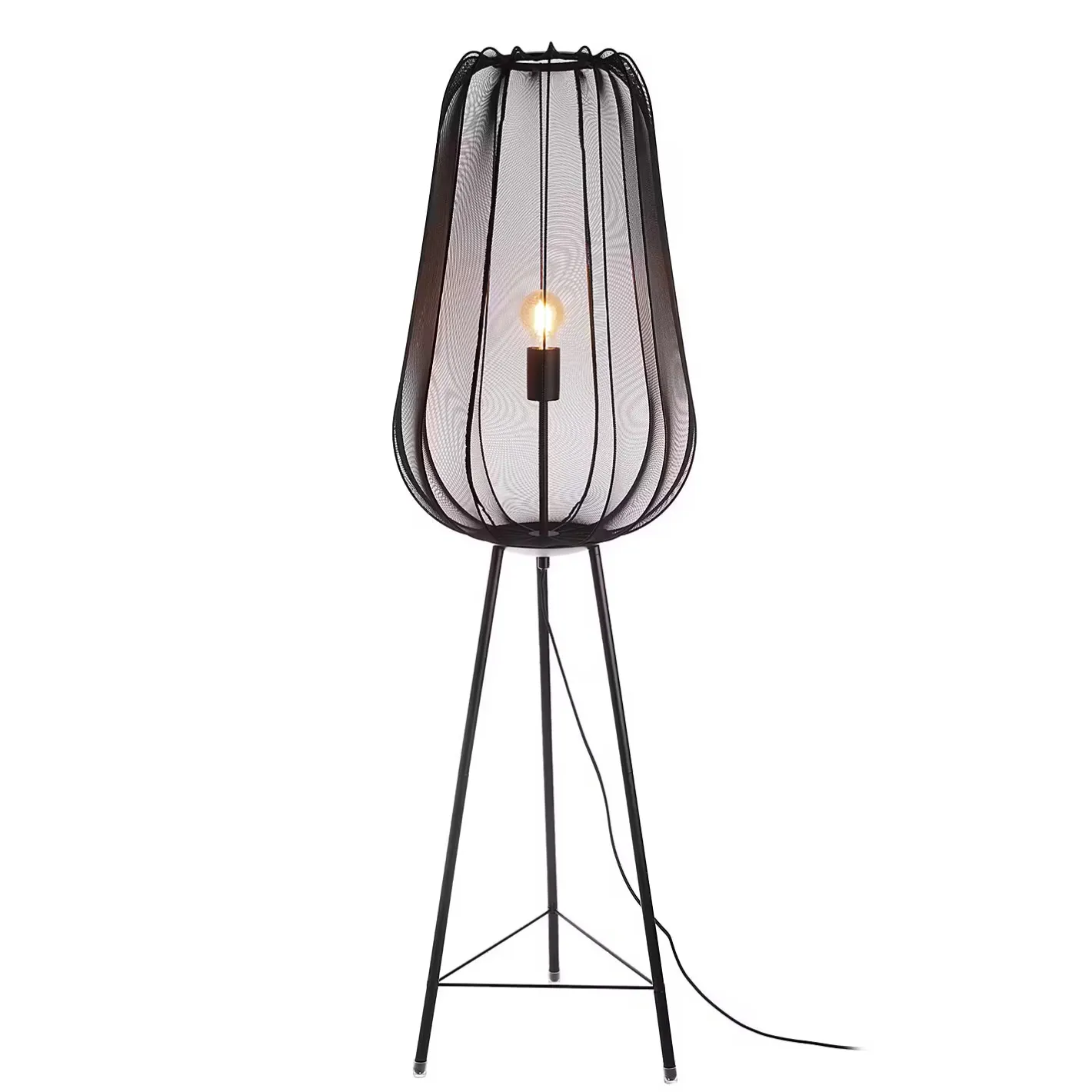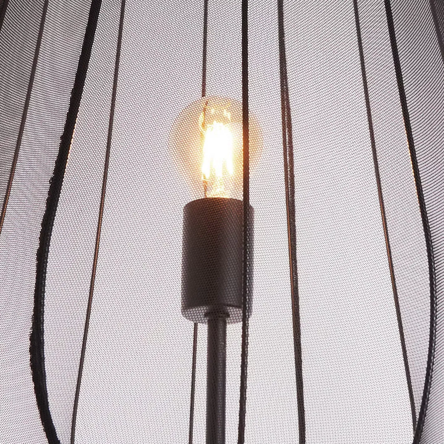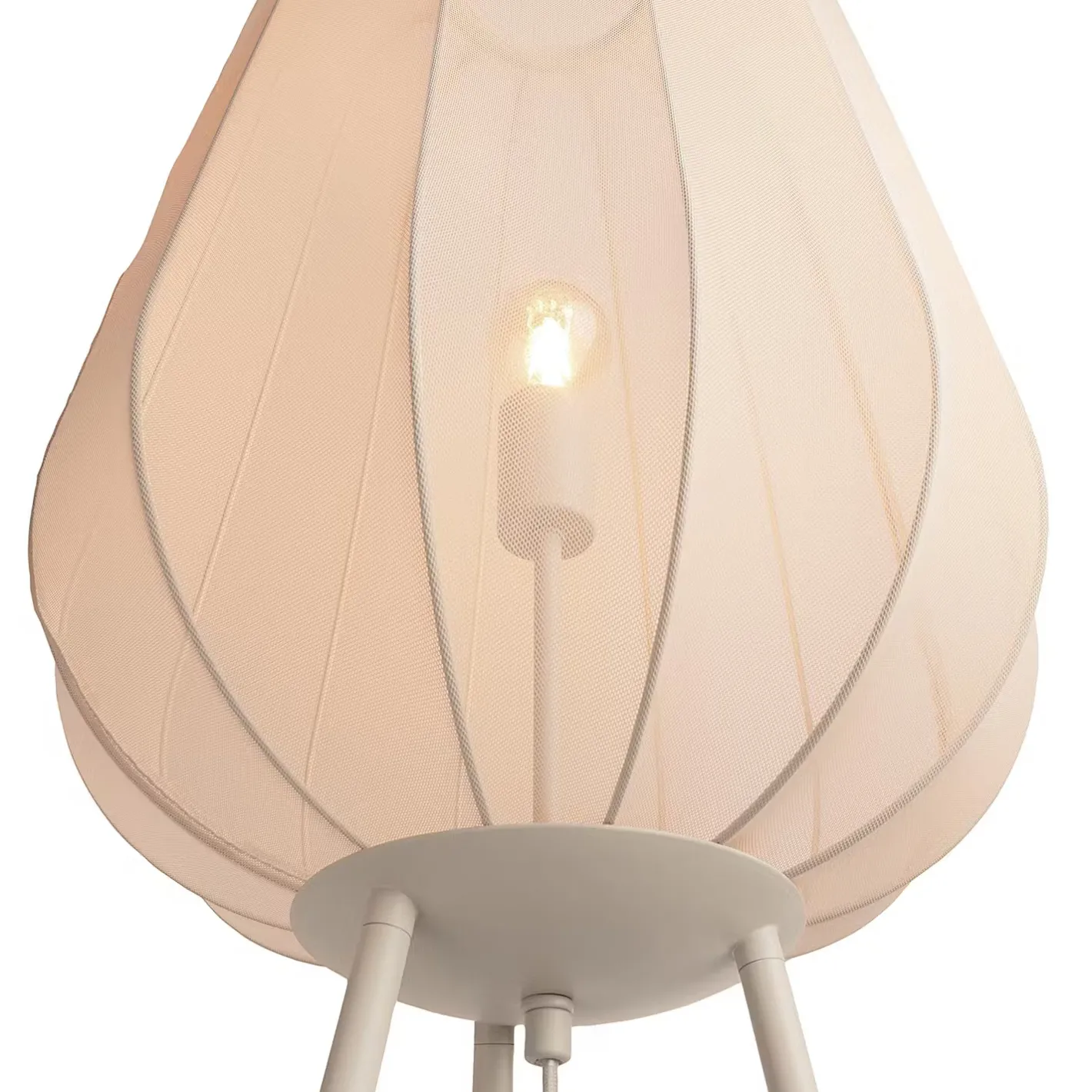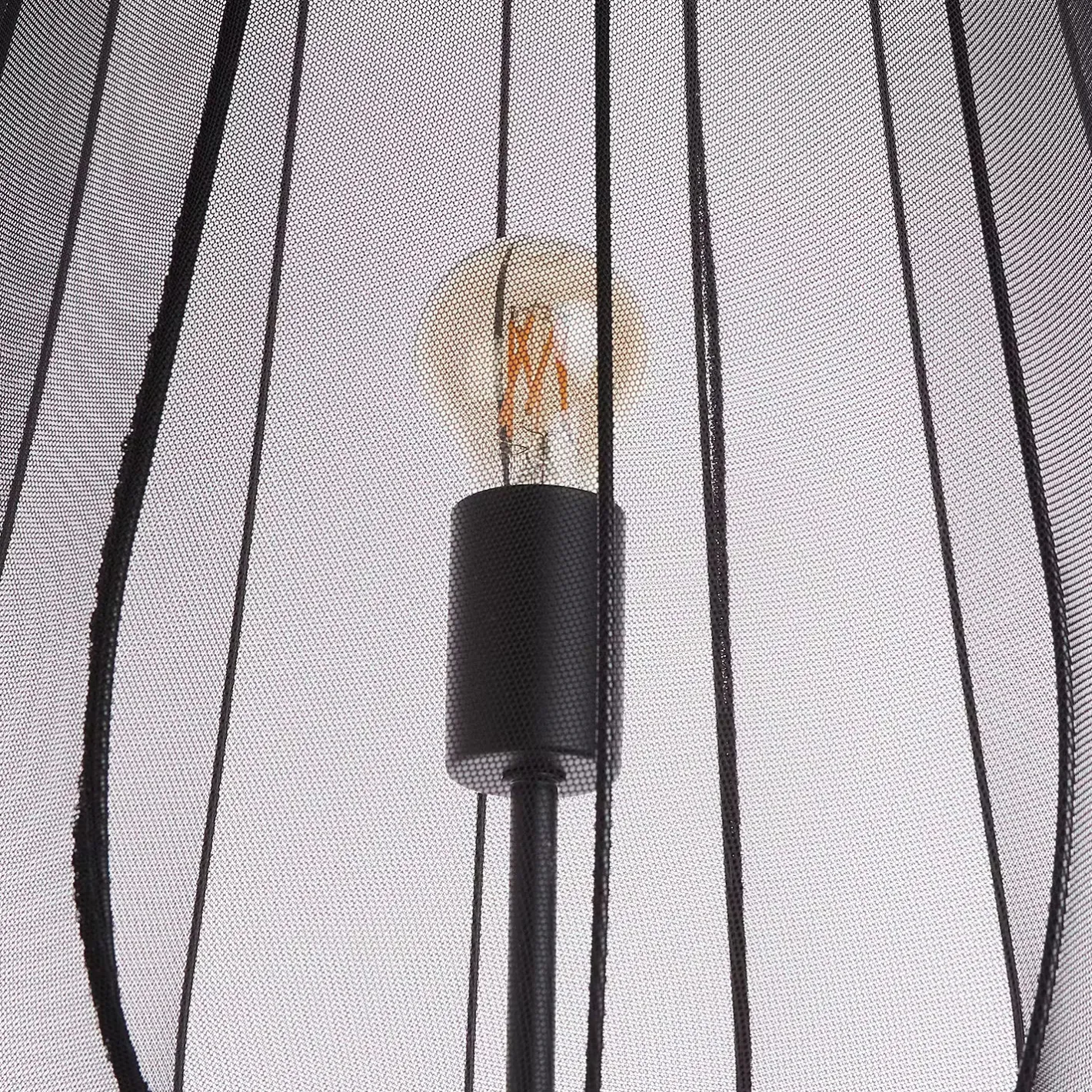 Ein Hauch von Extravaganz umgibt die moderne Amal Stehleuchte. Ihr hoher, geschwungener Schirm ist mit einem transparentem Netzgewebe überzogen und thront auf drei Beinen aus Eisen. Gerade diese Verbindung von exklusivem Design und hochwertiger Materialauswahl verleiht der Stehleuchte eine fast geheimnisvolle Ausstrahlung. In Creme und Schwarz erhältlich, auch als passende Tischleuchte und Hängeleuchte.