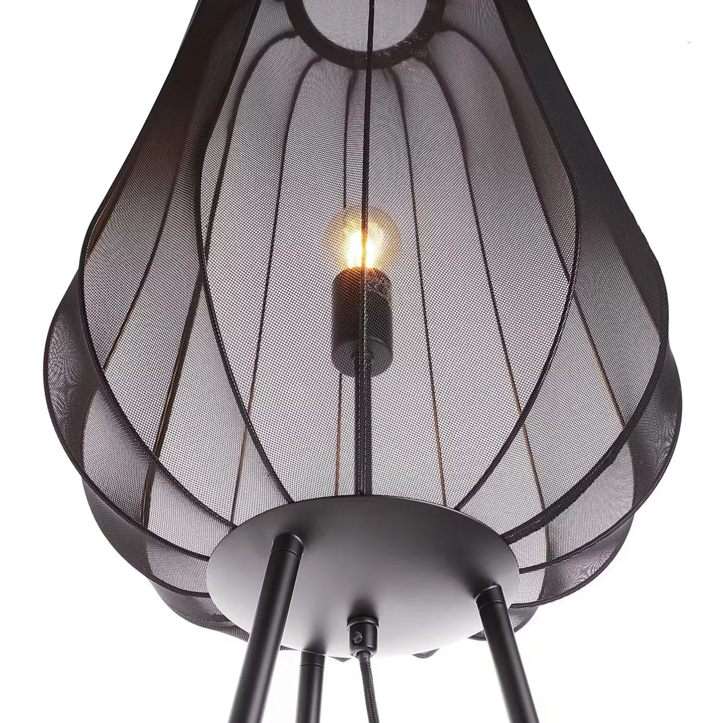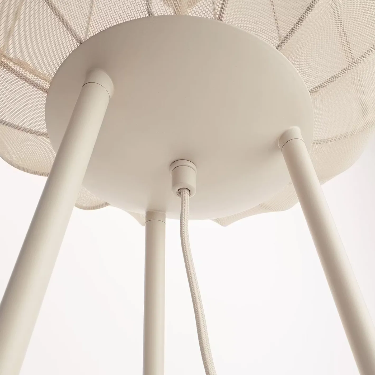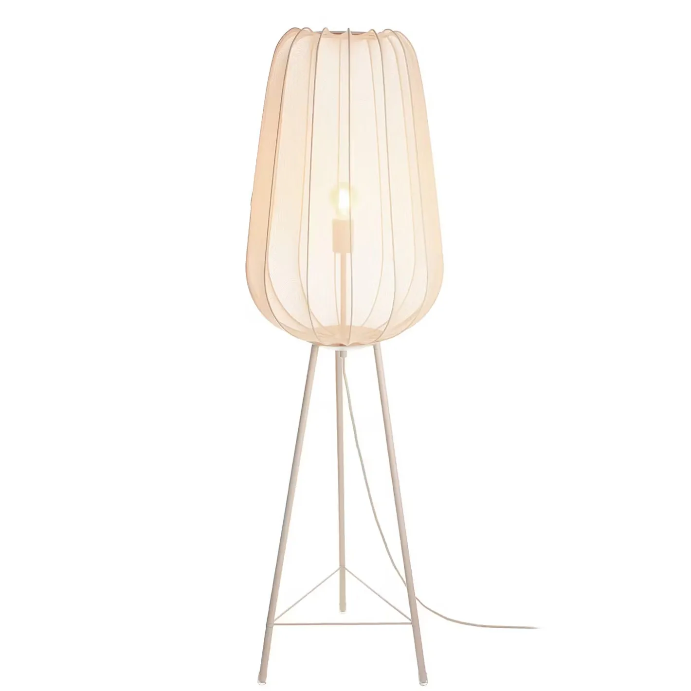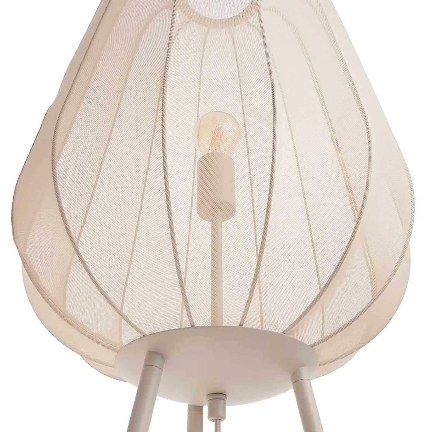 Ein Hauch von Extravaganz umgibt die moderne Amal Stehleuchte. Ihr hoher, geschwungener Schirm ist mit einem transparentem Netzgewebe überzogen und thront auf drei Beinen aus Eisen. Gerade diese Verbindung von exklusivem Design und hochwertiger Materialauswahl verleiht der Stehleuchte eine fast geheimnisvolle Ausstrahlung. In Creme und Schwarz erhältlich, auch als passende Tischleuchte und Hängeleuchte.