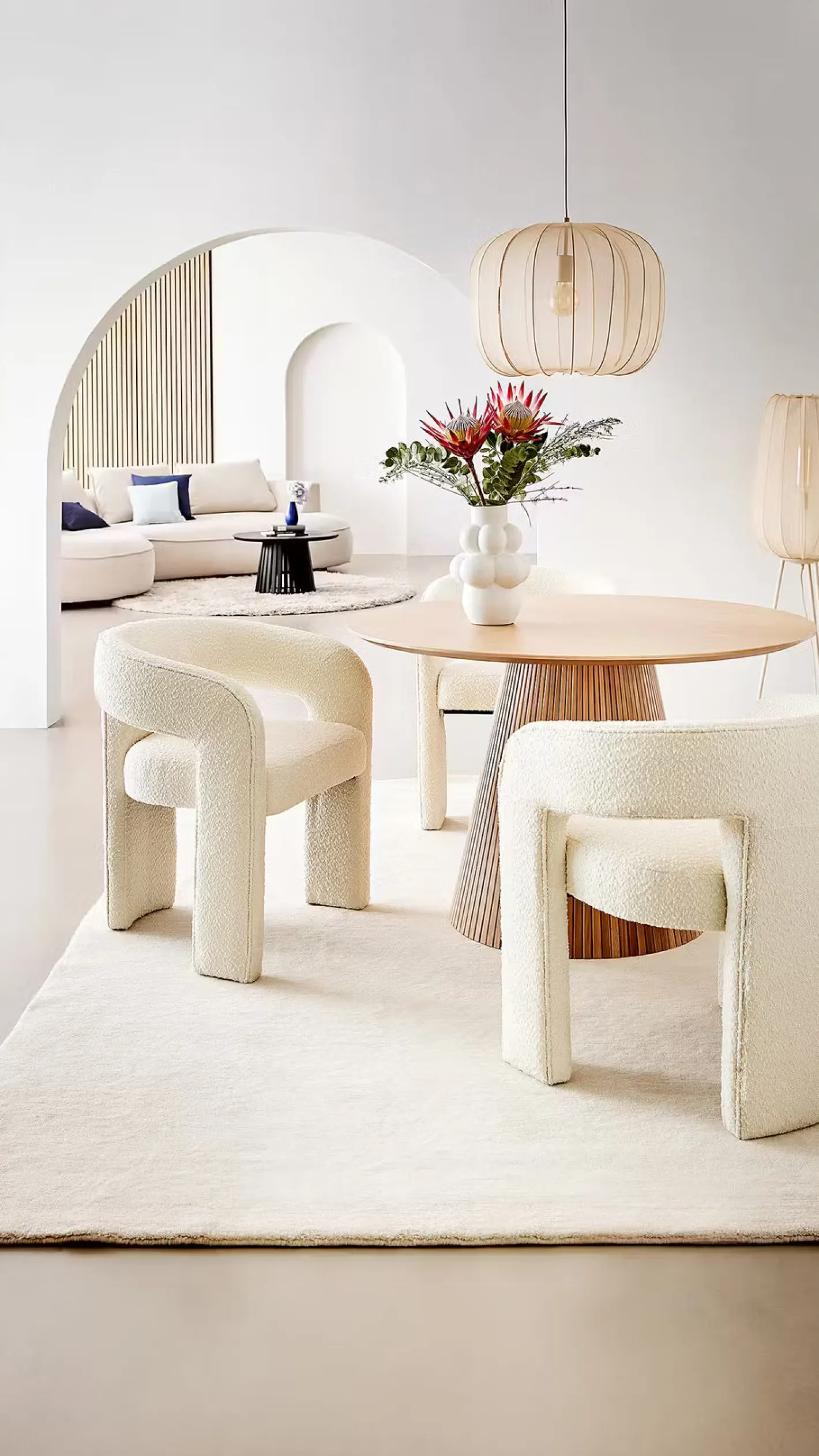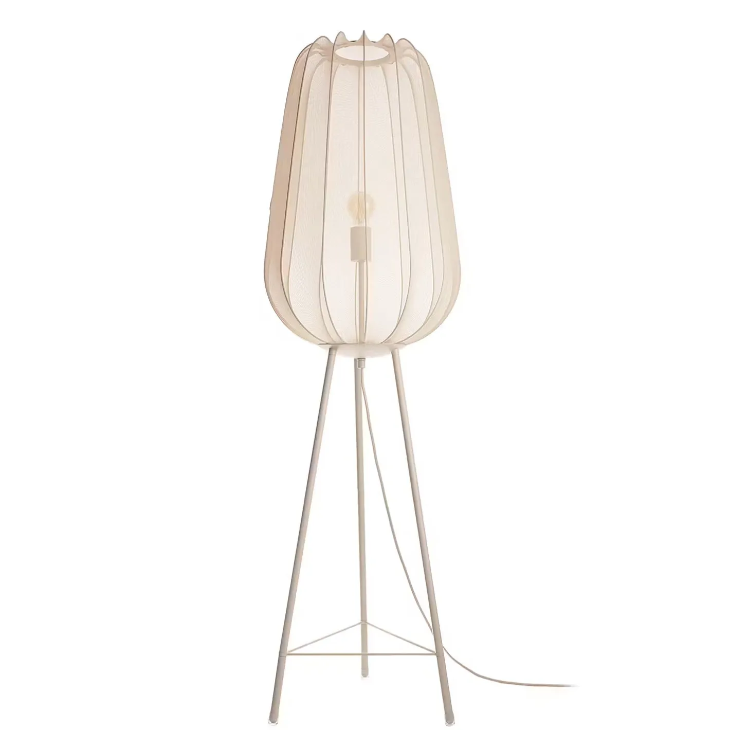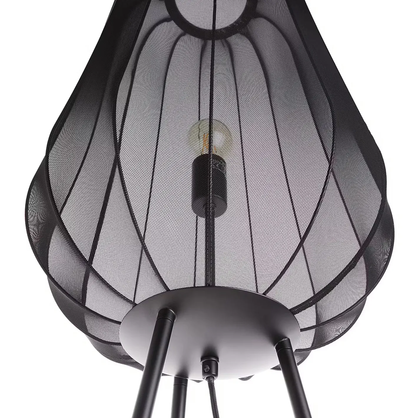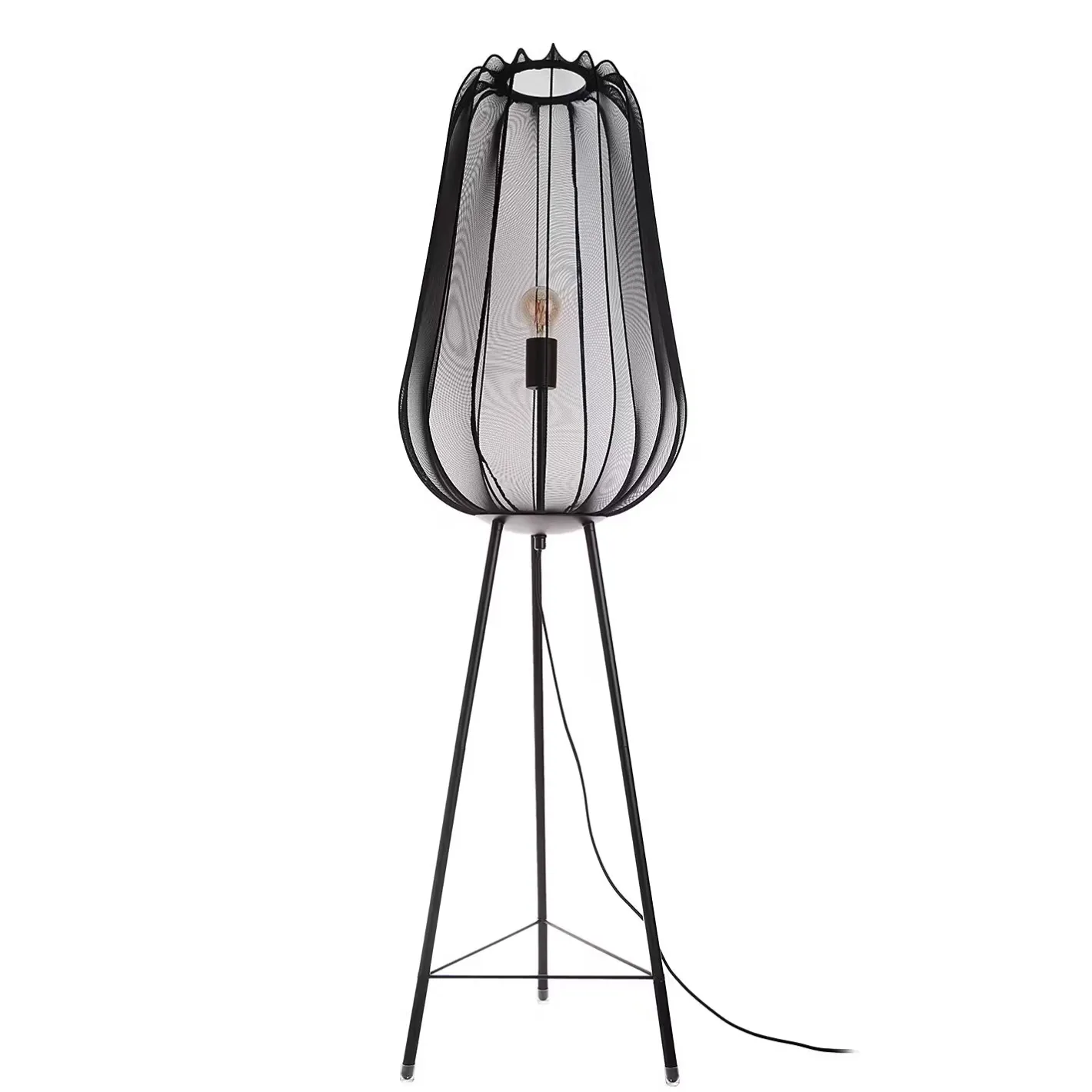 Ein Hauch von Extravaganz umgibt die moderne Amal Stehleuchte. Ihr hoher, geschwungener Schirm ist mit einem transparentem Netzgewebe überzogen und thront auf drei Beinen aus Eisen. Gerade diese Verbindung von exklusivem Design und hochwertiger Materialauswahl verleiht der Stehleuchte eine fast geheimnisvolle Ausstrahlung. In Creme und Schwarz erhältlich, auch als passende Tischleuchte und Hängeleuchte.