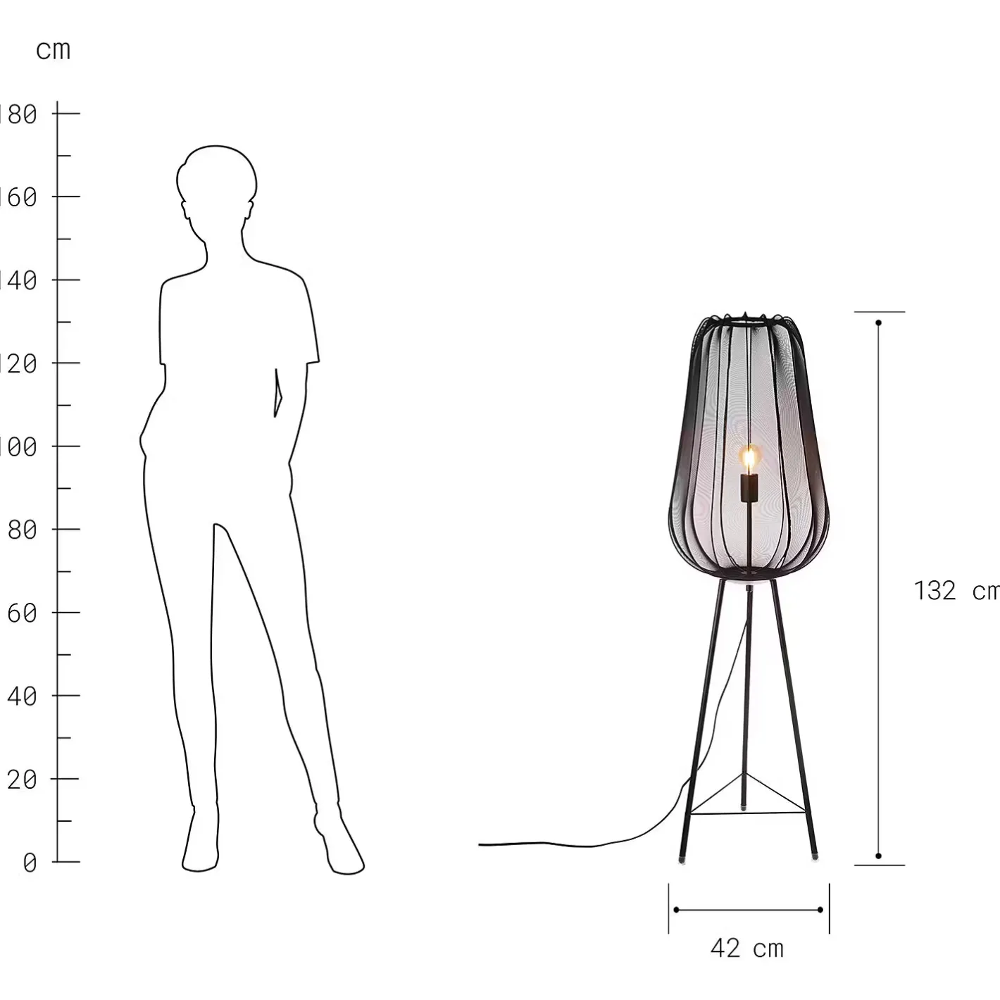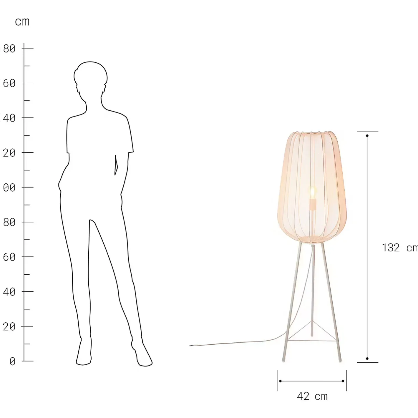 - Weitere Maße: Ø 42 cm, Höhe 132 cm, Kabellänge 2 m
