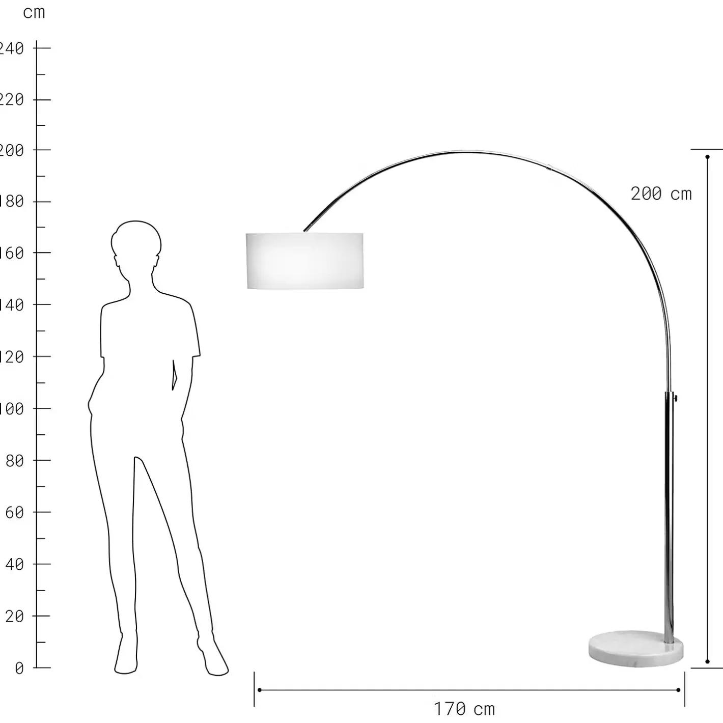 Schon im legendären Bauhaus wusste man um die Formschönheit von Bogenleuchten. Heute gelten sie als zeitlose Klassiker, die in Wohnräumen sehr dekorativ für angenehmes Licht sorgen. Die höhenverstellbare Bow-Bogenleuchte mit stoffbezogenem Schirm ist aus verchromten Metall gefertigt und mit einem standfesten Marmorfuß ausgestattet. Das Gestell montieren Sie mit wenigen Handgriffen selbst. In weiteren Varianten erhältlich.