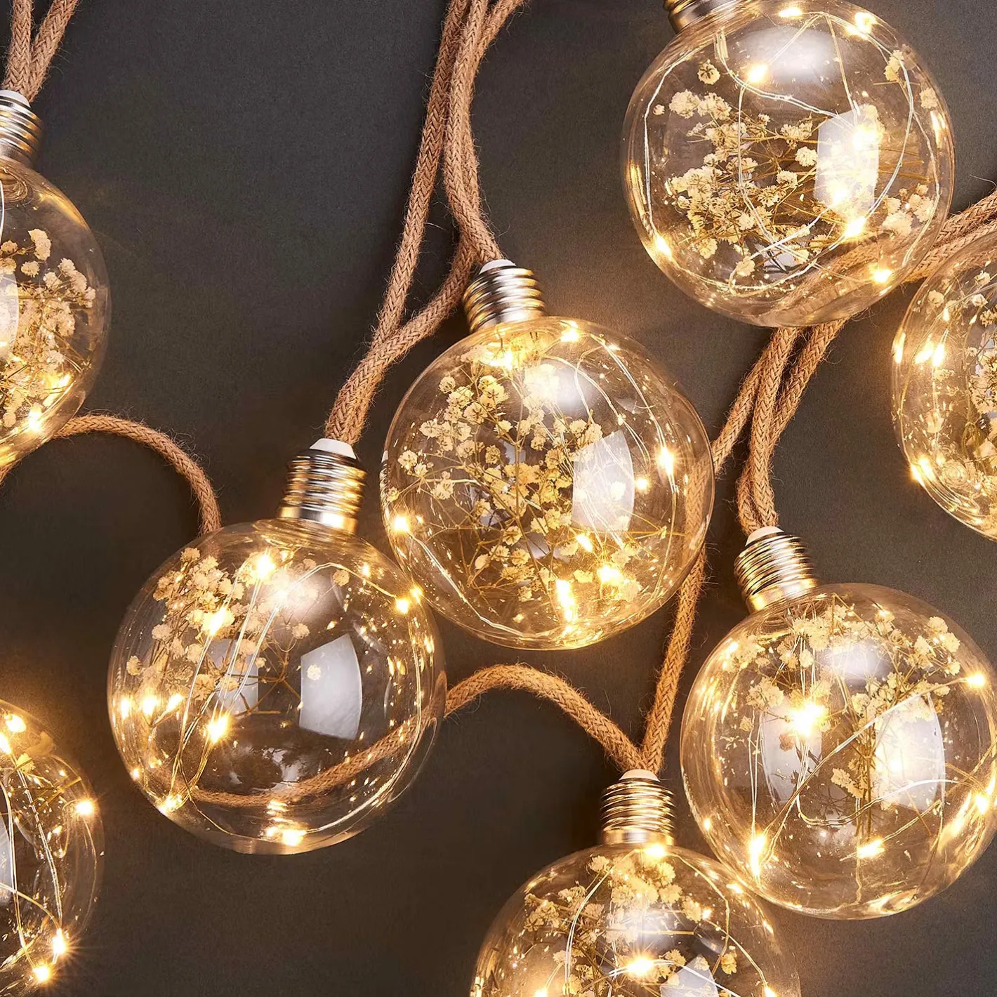 - Weitere Maße: Gesamtlänge: 580 cm, Länge beleuchteter Bereich: 280 cm, Länge Zuleitung: 300 cm, Ø der Kugel: 9,5 cm
