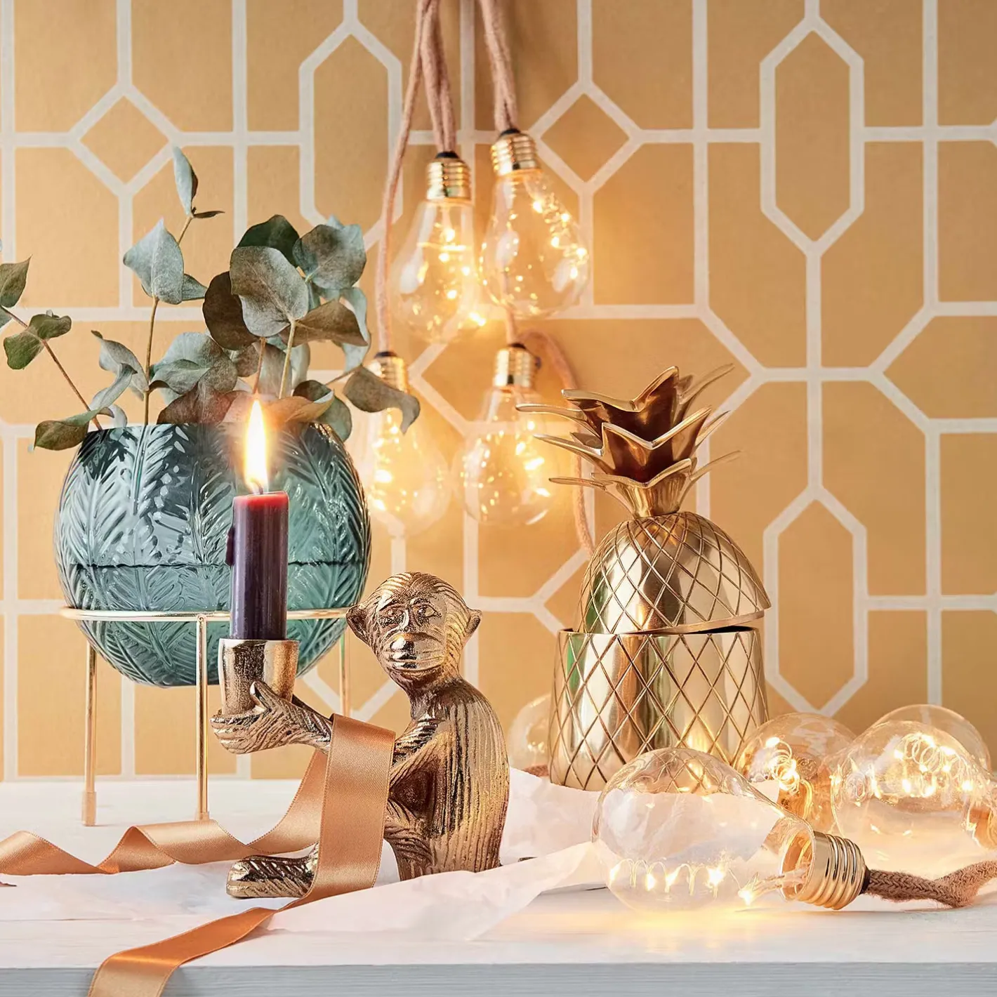 Der Le Singe Metall Kerzenhalter Affe in Gold ist reserviert für Deko-Mutige und Styling-Pioniere, die auf dem gedeckten Tisch und in Ihrem Zuhause gerne mal etwas Neues ausprobieren – auch fernab vom Mainstream.