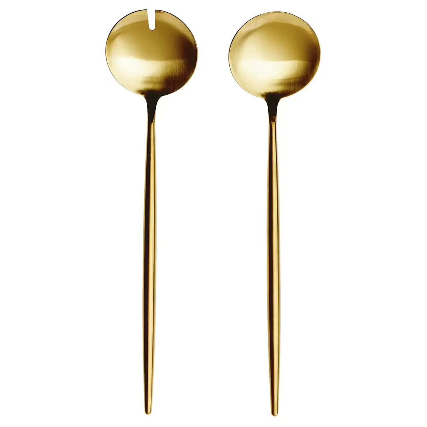 Für einen Wow-Effekt auf dem gedeckten Tisch sorgt das Stiletto Salatbesteck aus Edelstahl. Sein puristisches Design mit spitz zulaufenden Griffen passt in seiner Klarheit perfekt zum nordischen Stil. Doch das edle Salatbesteck sieht nicht nur gut aus: Beim Vermengen und Servieren leistet es perfekte Dienste. 2-teilig, in Schwarz und in Gold erhältlich.